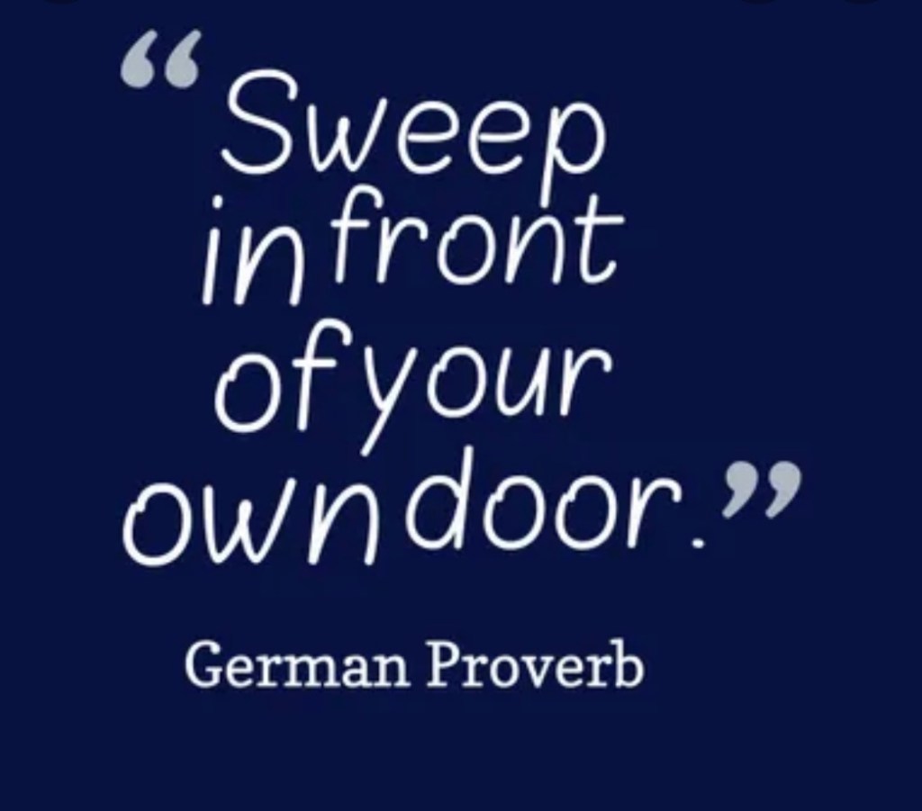 I can’t speak for any of you, but I can tell you I have enough dealing with myself. I am struggling to sweep my side of the street, I don’t have the energy to clean someone else’s side.